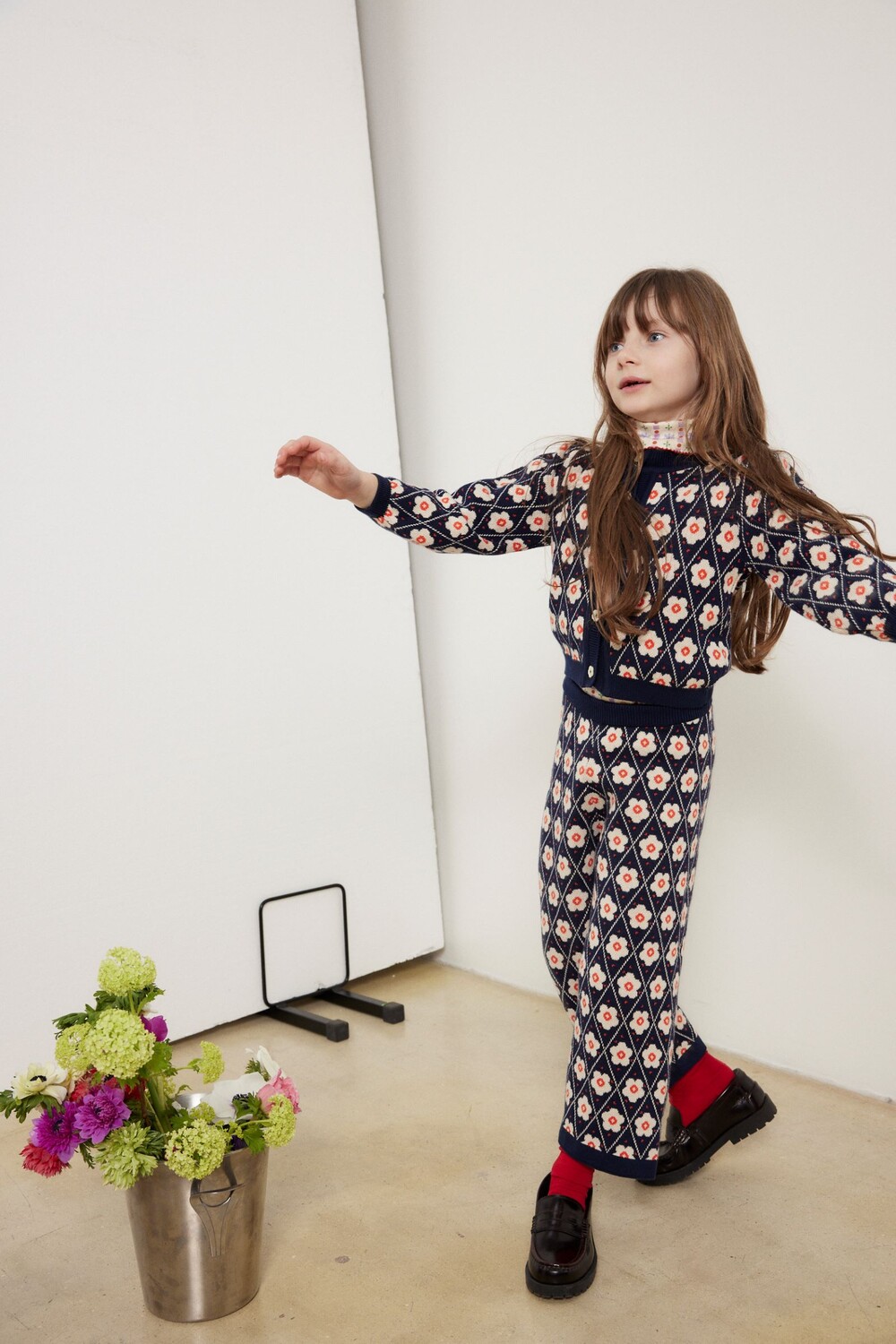 브랜드 특유의 칼라감과 플라워 자카드 니트 조직으로