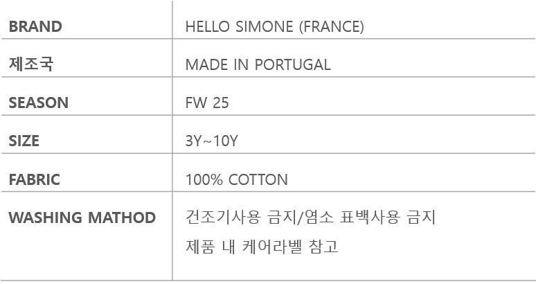 •본 사이즈 가이드는 Hello simone 본사에서 제공한 표준 사이즈 입니다.