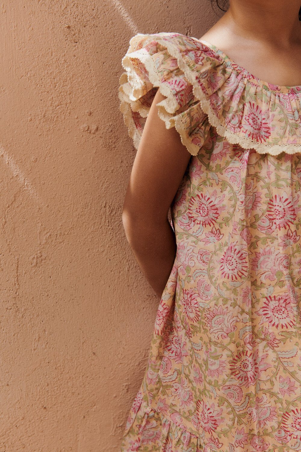 보헤미안 감성을 보여주고 러플 네크라인과