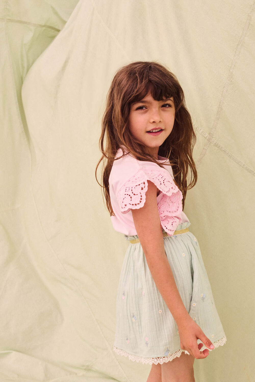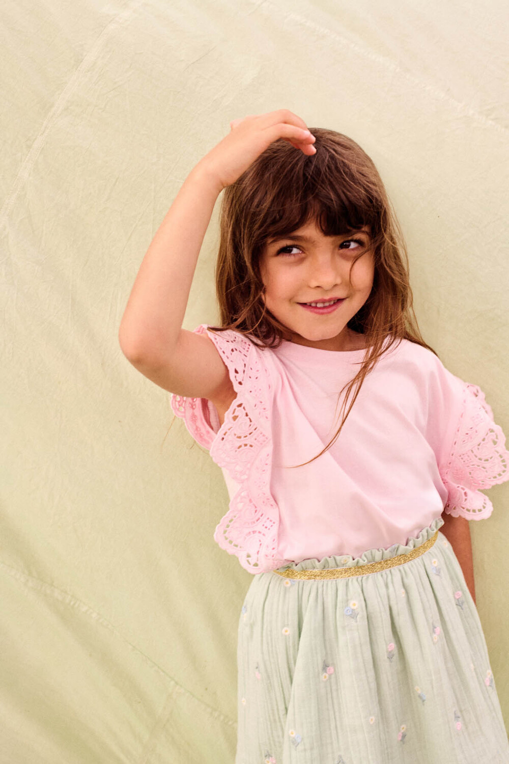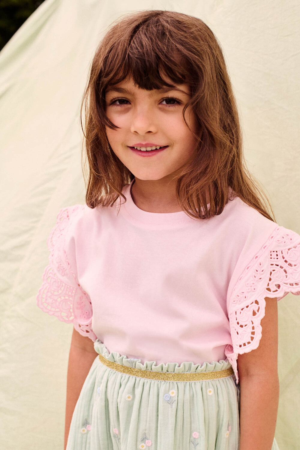 정교한 아일렛 소재와 소프트한 칼라감으로
