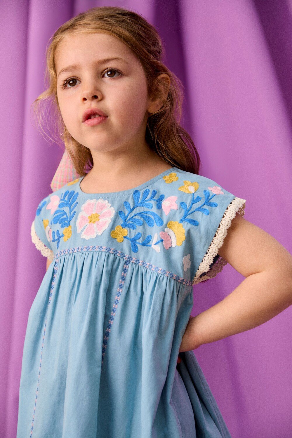 정교한 플라워 자수 기법과 섬세한 레이스 디테일로