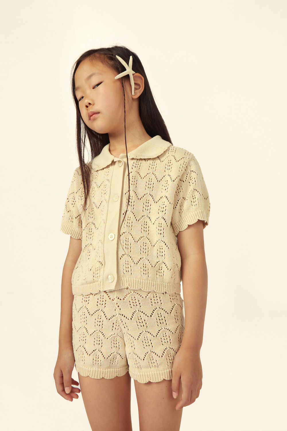 러블리한 스카시 니트 조직과 스칼럽 기법을 활용해