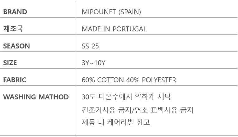 •본 사이즈 가이드는 Mipounet 본사에서 제공한 표준 사이즈 입니다.