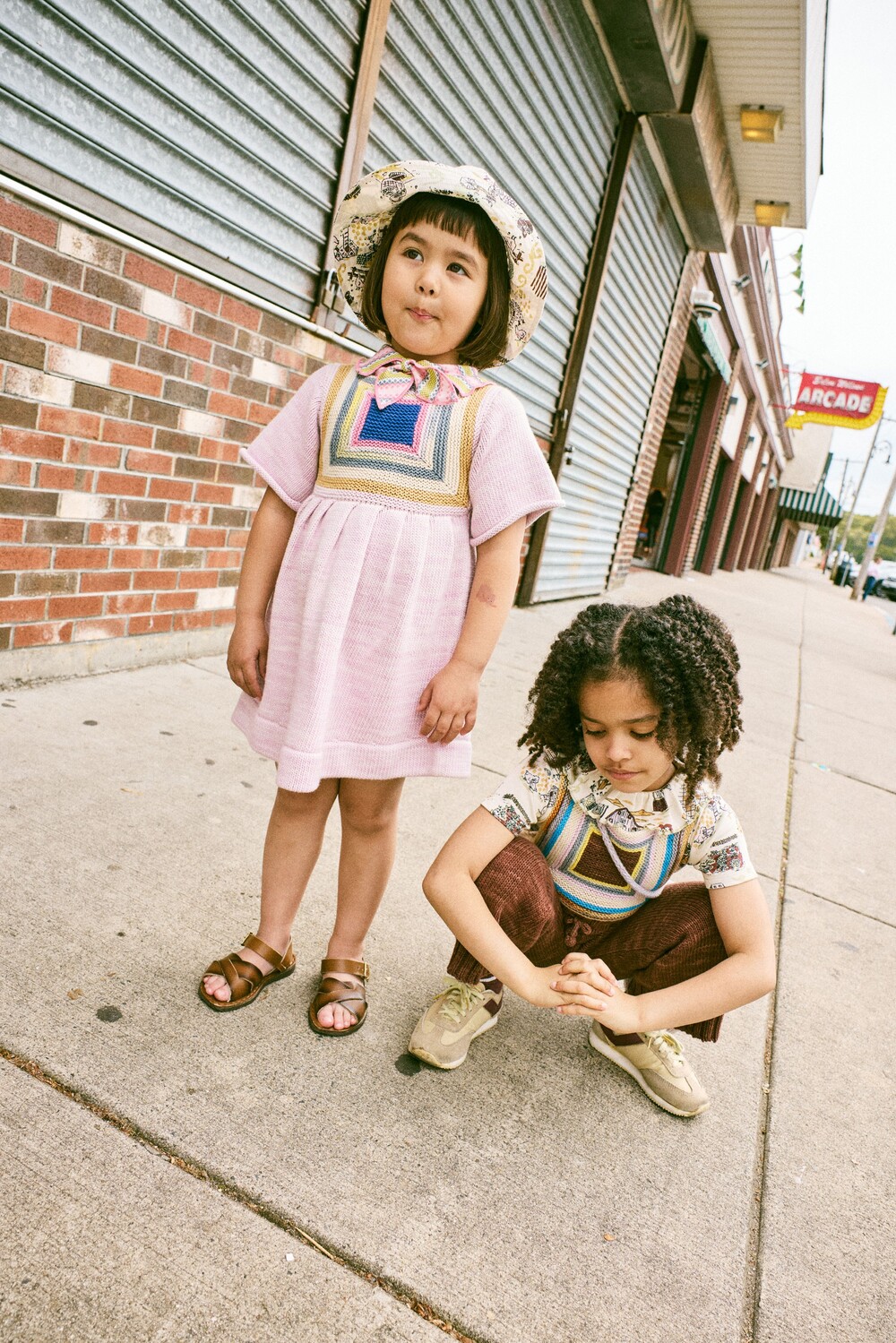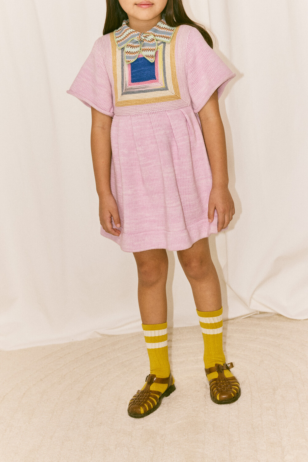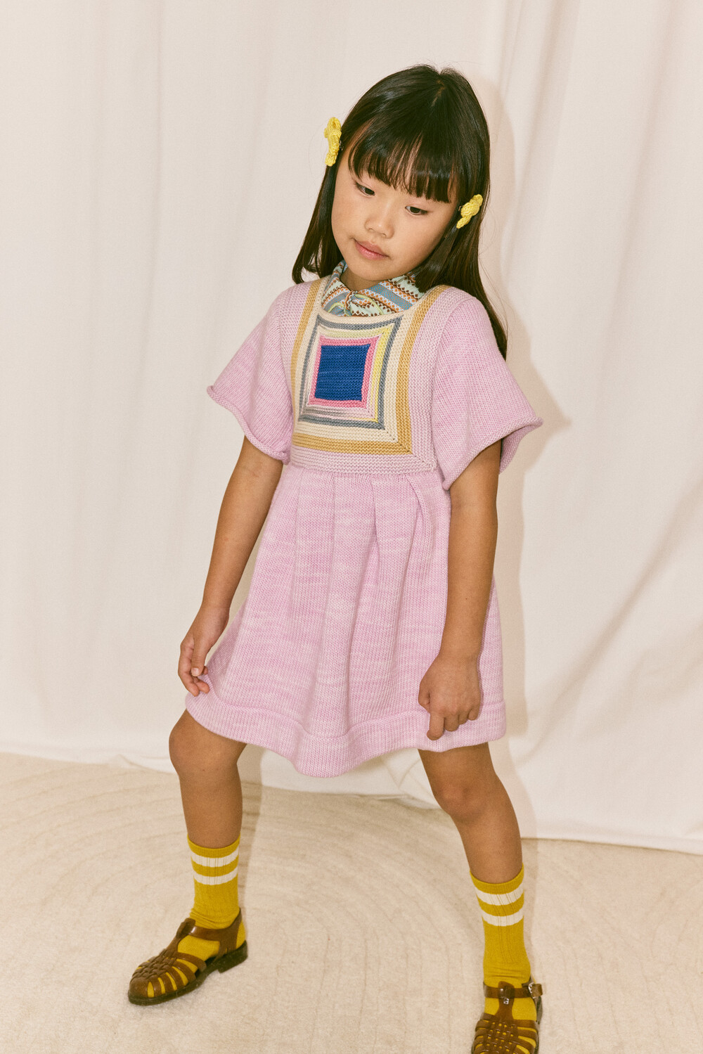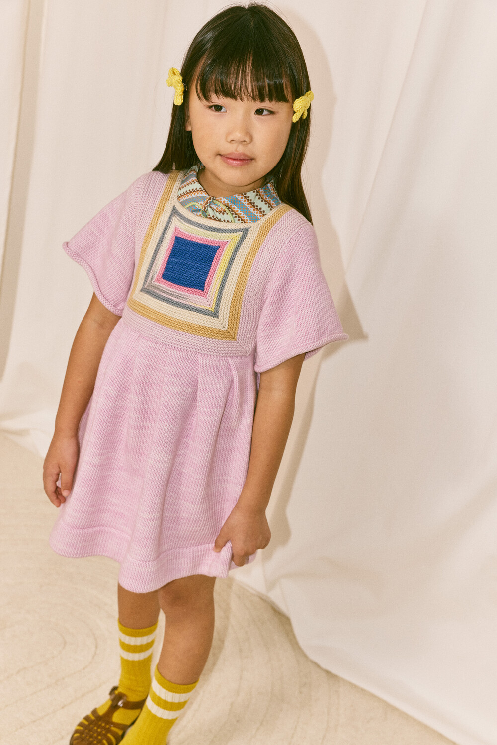 정교한 스퀘어 배색 기법과 연사된 니트 소재로